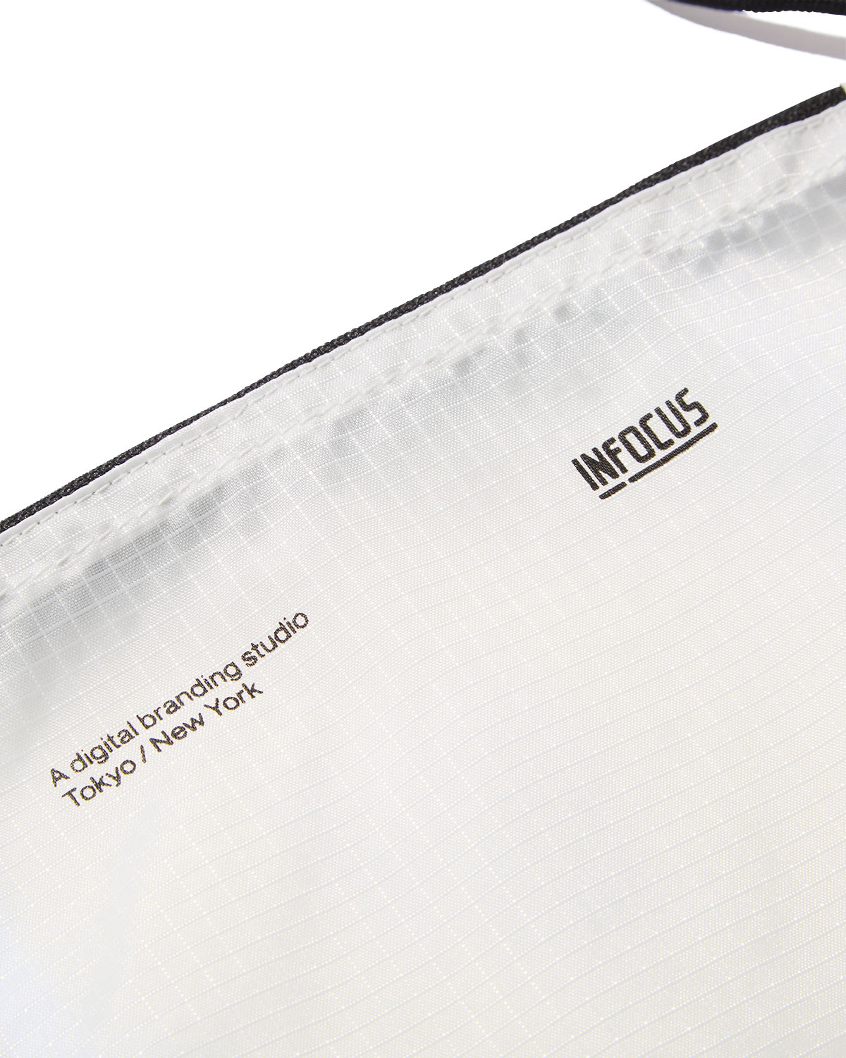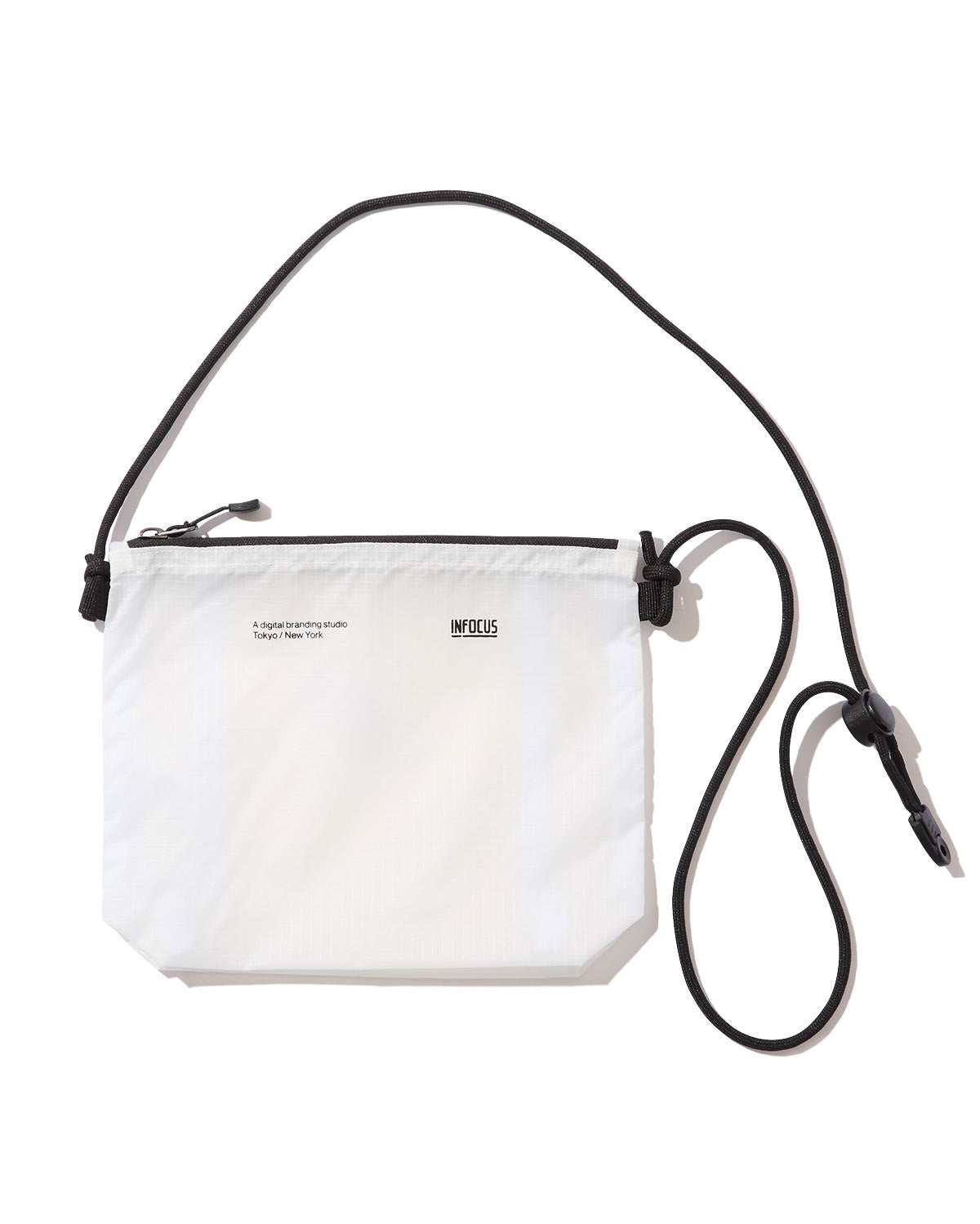 IN FOCUSのロゴがプリントされたナイロン製のマチありサコッシュ。